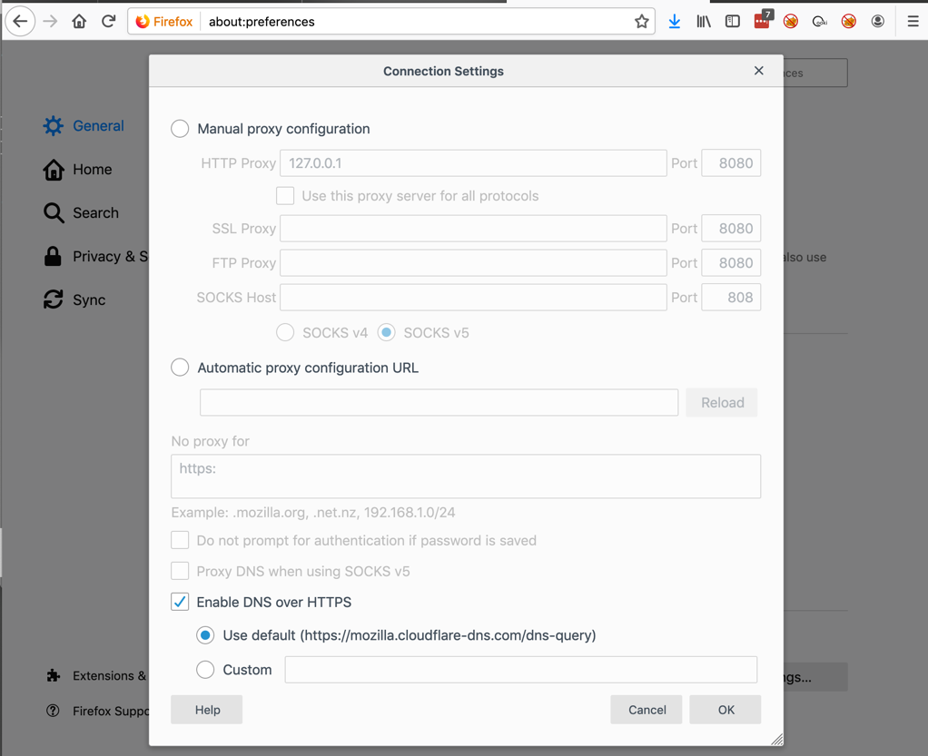 Firefox now allows you to use DNS over HTTPS. This project demonstrates the value of that privacy-enhancing system, and its limitations (which are troubling).