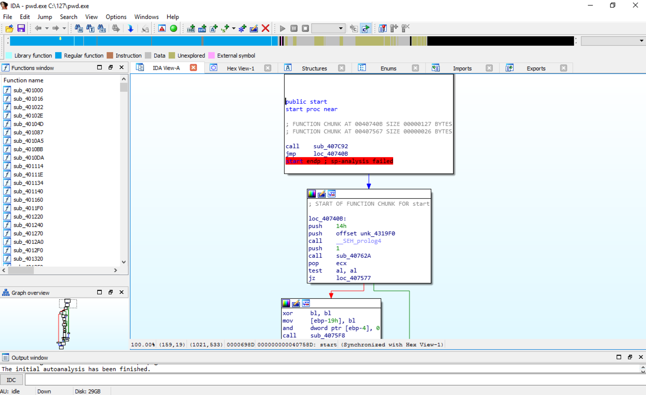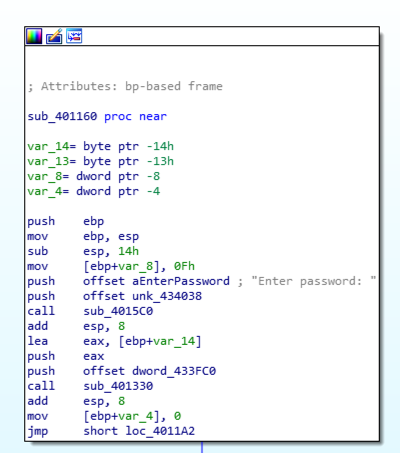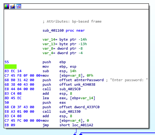 View the strings and follow the "DATA XREF" market to see the function that asks for the password again.