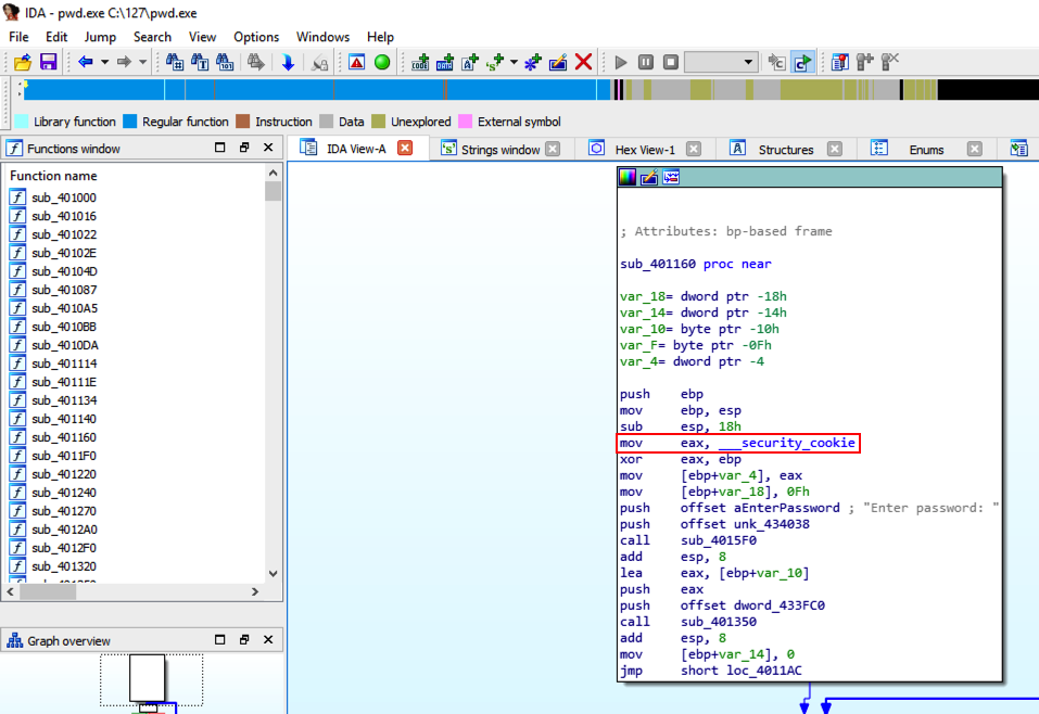 The function prologue appears, with a line containing "security_cookie", as shown below.