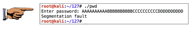 The "Segmentation fault" message indicates a buffer overflow. “Segmentation fault”消息表示缓冲区溢出。