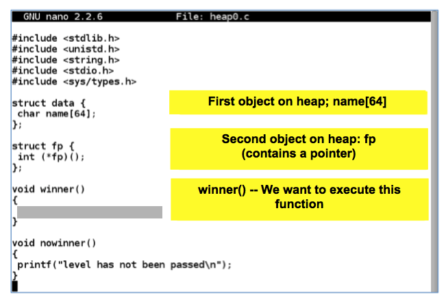 Scroll down to see the rest of heap0.c, as shown below.向下滚动以查看heap0.c的其余部分,如下所示。