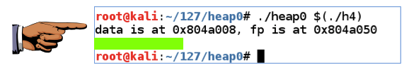The flag appears, covered by a green box in the image below.该标志出现,由下图中的绿色框覆盖。./heap0 $(./h4)