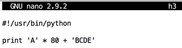 Modify the file to send only 70 'A' characters followed by 20 bytes in a nonrepeating pattern, as shown below.将文件修改为仅以非重复模式发送70个“A”字符,后跟20个字节,如下所示。cp h1 h2 nano h2
