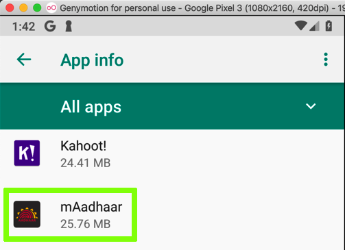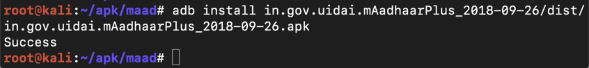adb install in.gov.uidai.mAadhaarPlus_2018-09-26/dist/in.gov.uidai.mAadhaarPlus_2018-09-26.apk adb install in.gov.uidai.mAadhaarPlus_2018-09-26 / dist / in.gov.uidai.mAadhaarPlus_2018-09-26.apk