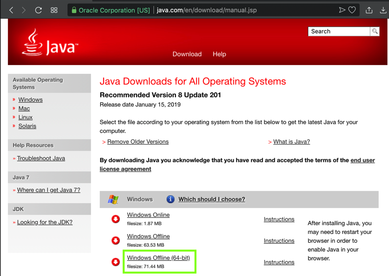 https://java.com/en/download/manual.jsp https://java.com/en/download/manual.jsp