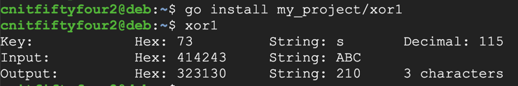 fmt.Printf("Output: \tHex: %x \tString: %s \t%d characters\n",
