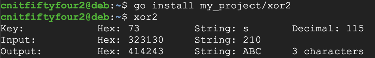 fmt.Printf("Input: \tHex: %x \tString: %s \n",