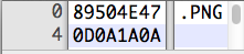 Notice that the first 4 bytes are 89, 50, 4E, 47; the 2nd through 4th byte spell out PNG in ASCII.